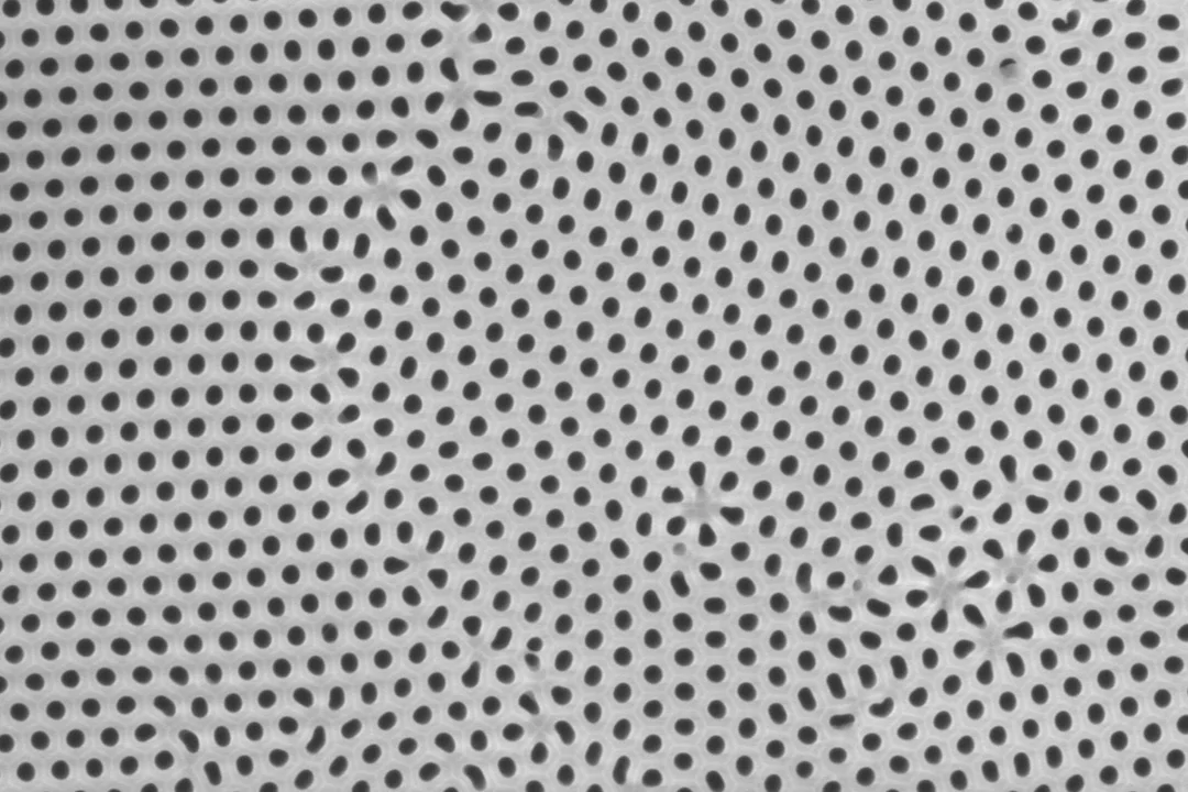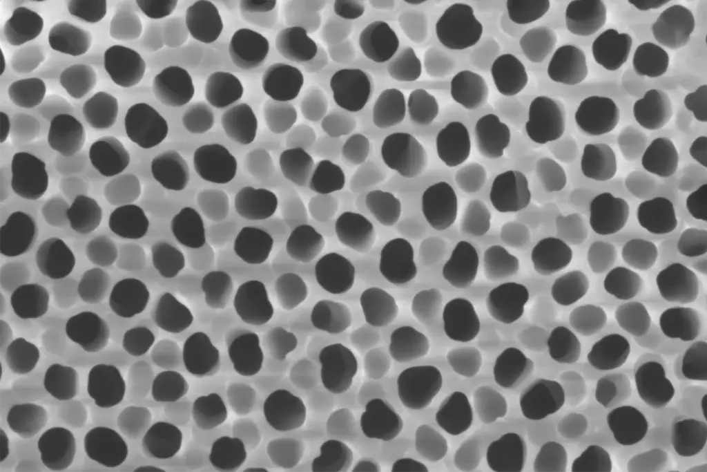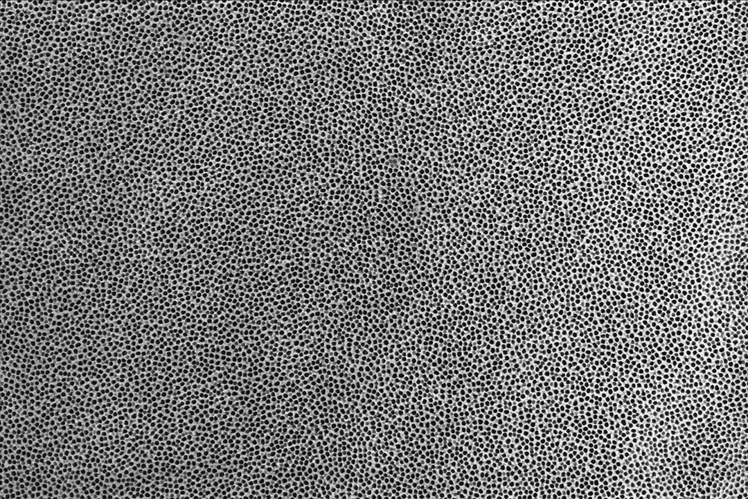Poröses Aluminiumoxid ist ein amorphes keramisches Material mit regelmäßig angeordneten Nanoporen. Die Membranen von SmartMembranes bestehen aus gleichförmigen, parallel ausgerichteten Porenstrukturen, deren Porengröße im Nanometerbereich präzise einstellbar ist.