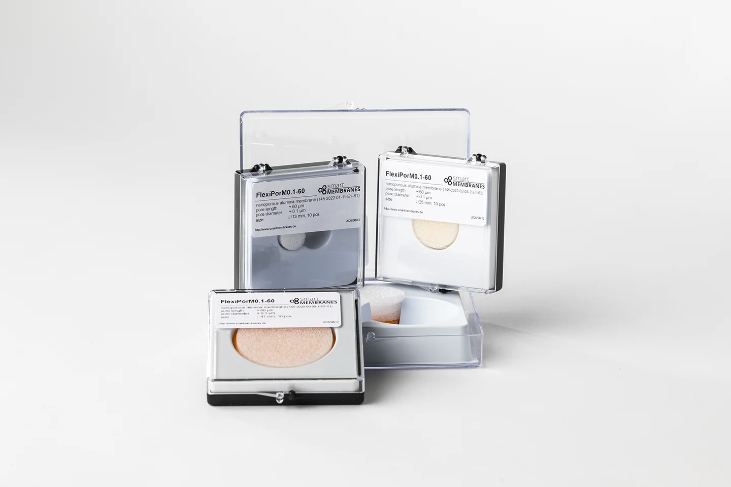 FlexiPor ist eine Produktlinie aus nanoporösem Aluminiumoxid mit einer asymmetrischen Porenstruktur, bei der beide Membranseiten unterschiedliche Funktionen erfüllen. Die Oberseite weist größere, über die gesamte Porenlänge konstante Porendurchmesser auf und ermöglicht einen hohen Durchfluss. Die Unterseite definiert durch kleinere Porenöffnungen die effektive Filtrationsgrenze, die je nach Ausführung gezielt eingestellt werden kann.